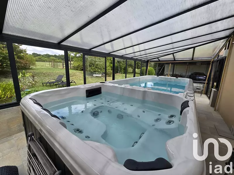 Véranda chauffée de 40 m² avec JACUZZI ET SPA de nage contre courant – vue imprenable sur la campagne