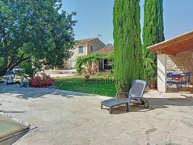 EYRAGUES CHAVEROT Jean-François 06.80.61.14.66 3 HABITATIONS pour un projet immobilier à la carte Façade en pierres et extension moderne pour cette propriété située à 5 mn à pied du centre du village et offrant 250 m² de surface + garage de 40 m². Séjour/cuisine équipée d'environ 60 m² + séjour/salon avec cheminée et mezzanine - 2 chambres au rez de chaussée + salle d'eau et salle de bains - toilettes - Garage et cellier. A l'étage : 2 chambres spacieuses et lumineuses - dressing - salle d 'eau - salle de bains et toilettes. Pompe à chaleur (chauffage par le sol) et climatisations réversibles - Adoucisseur d'eau - Eau de ville et tout à l'égout - Puit pour l'arrosage du jardin L'appartement indépendant permet une location saisonnière régulière avec un accès à la piscine de 10 x 5 (revêtement en gel coat) + abri de piscine coulissant. Le tout sur un agréable terrain d'environ 3700 m² arboré et clôturé. Les informations sur les risques auxquels ce bien est exposé sont disponibles sur le site Géorisques https://www.georisques.gouv.fr Annonce rédigée par Jean- François CHAVEROT Agent commercial immatriculé au RSAC 418 646 584 Annonce rédigée par Jean- François CHAVEROT Agent commercial immatriculé au RSAC 418 646 584