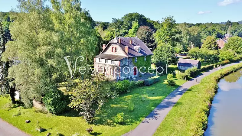 Construite au début du siecle dernier, cette propriété de 250m² environs, se situe dans le très pittoresque et recherché village de Haybes-sur-Meuse, elle bénéficie d’un emplacement exceptionnel avec sa vue imprenable sur la Meuse et profite du charme bucolique du bord de l’eau, de la piste cyclable et des promenades associées de la foret Ardennaise. Cette maison de 9 pieces vous offre, comme à la belle époque, des volumes et des hauteurs sous plafonds très généreux elle est distribuée en RdC avec une entrée, un salon, une cuisine, une petite salle à manger, une autre grande salle à manger, un bureau, à l’étage 4 chambres et 3 Sdb, au 2 e étage un vaste grenier qui distribuait 3 chambres (à revoir). Très grande cave en totalité, un garage double. Nombreuses terrasses autour de la maison pour profiter de la vue, du soleil ou de l’ombre, jardin pelousé de 1.400 m².