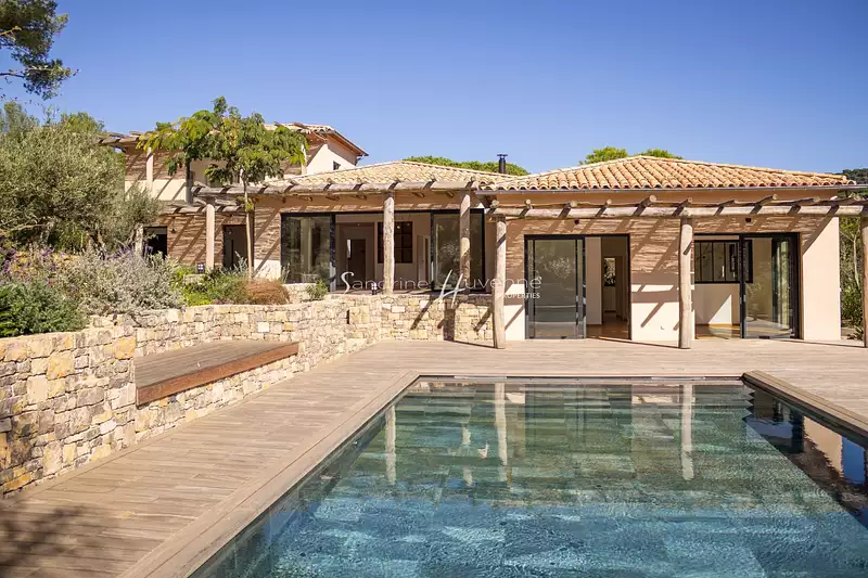 LA CROIX VALMER - GIGARO : À quelques pas de la plage de Gigaro, implantée dans un havre de paix et un écrin de verdure environnant, se déploie cette somptueuse villa individuelle de construction récente, savamment aménagée pour répondre aux exigences de confort et de fonctionnalité d'aujourd'hui.