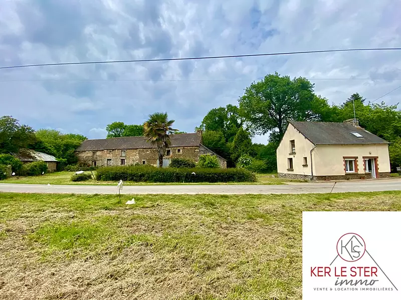 A VENDRE chez Ker le Ster Immobilier Découvrez cet ensemble de trois maisons situé à 15 minutes de Mauron et de Merdrignac, en campagne de Ménéac. Cet ensemble est idéal pour un projet familial ou un investissement locatif. Le lot de propriétés s'étend sur un terrain généreux d'environ 6850 m². Maison 1 : Maison d'environ 65 m² habitable en l'état. Au rez-de-chaussée elle comprend une cuisine séjour, une salle d'eau avec WC et une chambre. A l'étage, vous trouverez un dégagement et deux chambres. La maison est implantée sur un terrain d'environ 560 m². Maison 2 : Longère indépendante d'environ 160 m² entièrement à rénover. Elle est située sur un terrain d'environ 3000 m². Maison 3 : Maison Mitoyenne nécessitant également une rénovation complète. Elle se trouve sur un terrain d'environ 630 m². En face des trois maisons, vous trouverez un terrain non attenant d'environ 2700 m². Ce terrain comprend un hangar, offrant la possibilité de stationner un camping-car. Cet ensemble immobilier se trouve dans un hameau au calme. Amoureux des grands espaces et de la rénovation cette maison est faite pour vous ! (5.82 % honoraires TTC à la charge de l'acquéreur.)