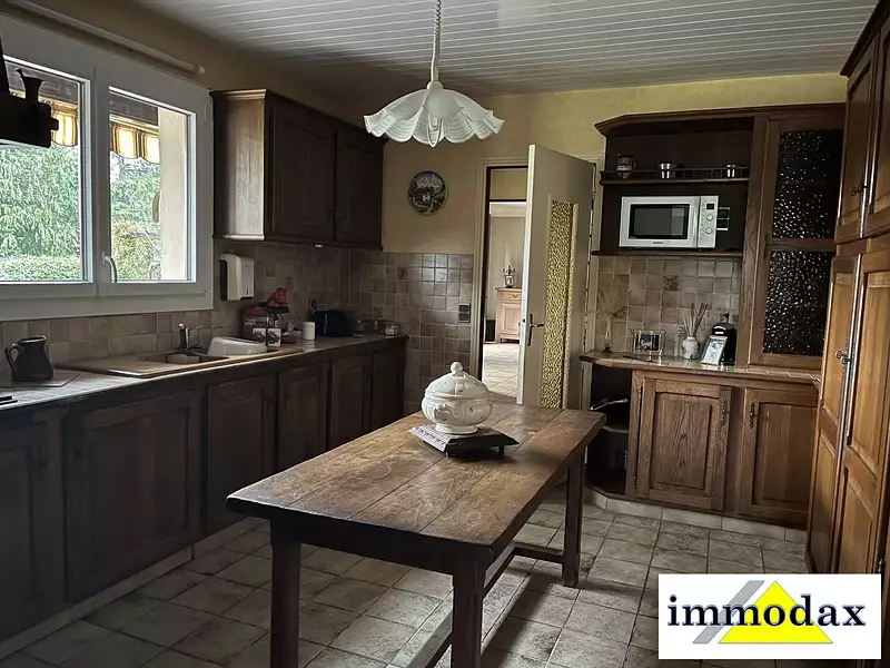 Le séjour de 43 m² avec cheminée, est le coeur de la maison. Il s'ouvre sur une terrasse où vous pourrez profiter des douces soirées d'été. La cuisine, indépendante et entièrement aménagée, est un véritable atout pour les amateurs de gastronomie.