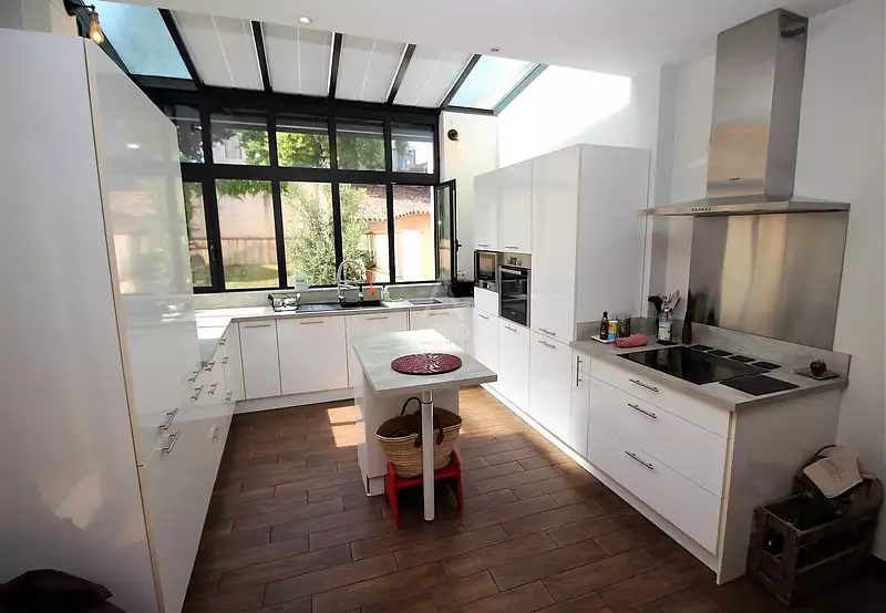 - Cuisine ouverte, aménagée, équipée