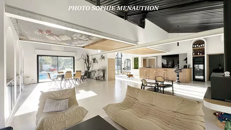 Exclusivité pour cette Villa moderne et atypique à deux pas du centre-ville, sur un terrain paysager de 1 800 m², de type T7 de 250 m², aux lignes épurées et à la luminosité exceptionnelle. Dès l'entrée, la lumière s'invite dans une pièce de vie de 120 m², traversante, au design épuré et chaleureux, rythmée par un poêle à granulés et un poêle à bois. La cuisine ouverte, moderne et entièrement équipée, prolonge harmonieusement cet espace de convivialité. La partie nuit se compose de quatre chambres, dont deux suites parentales avec dressing, une salle de jeux, trois salles de bains et deux WC. À l'extérieur, un pool house de 35 m² donnant sur la piscine, un dépendance pouvant contenir 4 vehicules ainsi que plusieurs places de stationnement Cette villa séduit par son architecture pure, son confort moderne et sa luminosité remarquable. Autres prestations : panneaux solaires pour de l'auto consommation, climatisation reversible par pompe à chaleur, poêles à granules + poêles à bois. Contactez Sophie MENAUTHON Tél : 06 25 42 67 68 ou Séverine ETCHEGARAY Tél : 06 75 49 61 04 EQUINOXES IMMOBILIER Agence specialisée en biens de Prestige Landes et Pays Basque Plus d'informations (réf. 4000926220) Prix TTC et Honoraires à charge vendeur TTC Prix moyens des énergies indexés sur les années 2023 2024 2025 (abonnement compris). Montant estimé des dépenses annuelles d'énergie pour un usage standard : entre 1 800 € et 2 000 € par an. Les informations sur les risques auxquels ce bien est exposé sont disponibles sur le site Géorisques : georisques.gouv.fr