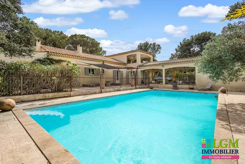 250 m² habitables + 150 m² de dépendances – Terrain arboré de 5 000 m² – À 30 min d'Aix-en-Provence / 40 min de l'aéroport Marseille-Provence