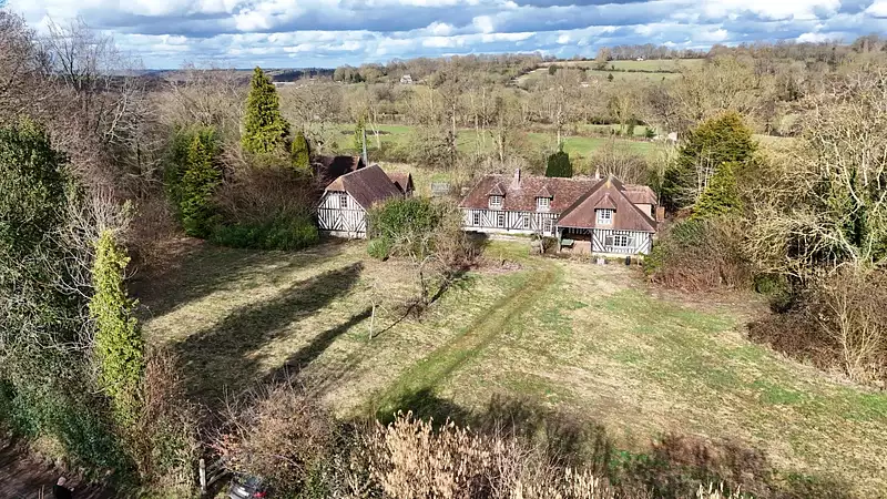 Située dans un environnement verdoyant et paisible, cette propriété augeronne de caractère, édifiée sur plus d’un hectare de terrain, se compose d’un ensemble harmonieux de plusieurs bâtiments en pans de bois, couverts en tuiles plates, reflet de l’architecture traditionnelle augeronne.