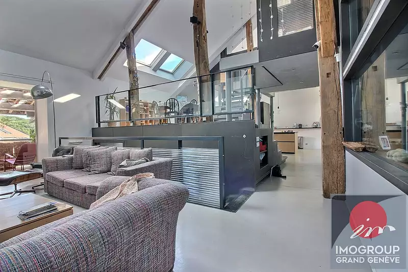 SOUS COMPROMIS:Charmant Village de Vesancy : Coup de coeur assuré pour ce corps de ferme atypique rénové de plus de 300 m2 utile offrant l'alliance parfaite de l'authenticité et de la modernité. L'habitation comprend 4 chambres dont une suite parentale très cosy avec poêle scandinave, salle de douche et dressing. 3 autres chambres dont 2 avec salle de douche privative et une avec wc. Cuisine à vivre de 32 m2 équipée avec ilot central offrant l'accès direct sur une grande terrasse. Salon avec cheminée et terrasse, salle à manger. Le rez est desservi par un grand garage de 140 m2 env. Incluant un grand studio indépendant. Une terrasse sous toiture offre une très belle vue panoramique.2 emplacements de parking. Système de chauffage très économique assuré par la géothermie ! Le bien bénéficie de la fibre.