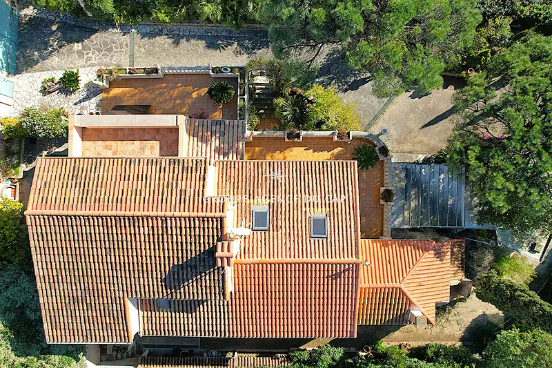 A vendre, proche de la mer et du centre du village des Issambres. Villa style "provençale" sur 3 niveaux répartis de la manière suivante. Partie principale en rez-de-chaussée 3 pièces : un séjour double avec cheminée, cuisine d'été ouverte sur une terrasse Sud, cuisine, 2 suites avec salle de bains/douche ouvertes sur terrasse. Au 1er étage : 3 pièces : séjour, cuisine, terrasse, solarium fermé, 2 chambres, salle de bains et rangements + grenier aménageable. En rez-de-jardin : 2 pièces avec salon, cuisine d'été ouverte sur le jardin et terrasse. Abri voitures, garage double et sous-sol.. Piscine possible. Les 3 appartements ont chacun un accès un indépendant et un découpage est très facilement réalisable !