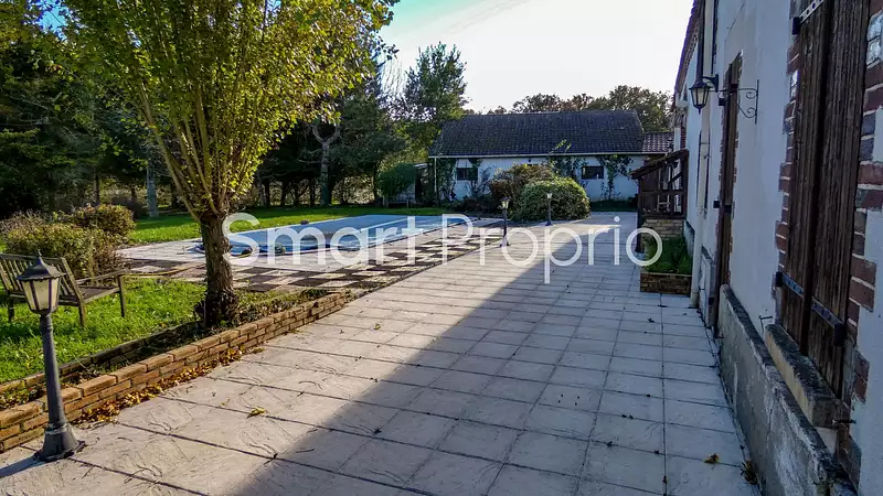 À l’extérieur, vous profiterez d'un jardin de 1 341 m2 avec une piscine (liner à remplacer- machinerie à faire vérifier). Dépendances à usage de garage et local chaufferie (38,7 m2).