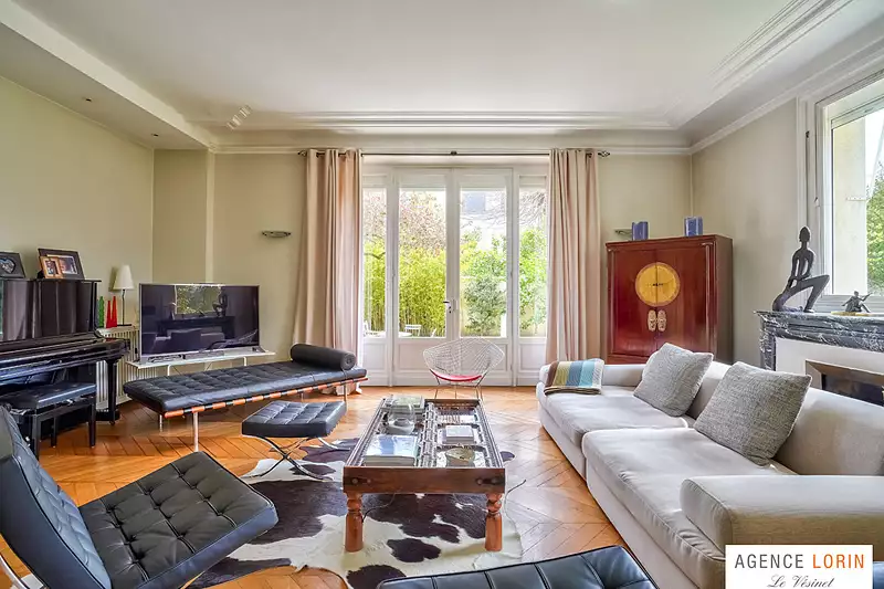 A VENDRE PAR L'AGENCE LORIN Maison datant de 1903 , à proximité immédiate du RER A et des commerces, d'une surface habitable de 252 m2 implantée sur une parcelle arborée de 700m2. Elle dispose au rez-de-chaussée d'une entrée, toilettes invités, salle-à-manger ouverte sur un salon avec un accès sur terrasse et jardin exposés Sud-Est et une cuisine dinatoire parfaitement équipée. Le 1er étage distribue un grand palier aménagé en salon-bibliothèque, une chambre/bureau et une suite parentale avec sa salle de bains. Le 2ème niveau offre trois chambres, une salle de bains et toilettes séparés. L'entresol comprend un grand studio (salle de douches, toilettes, espace cuisine aménagé), chaufferie, cave à vins et rangements.