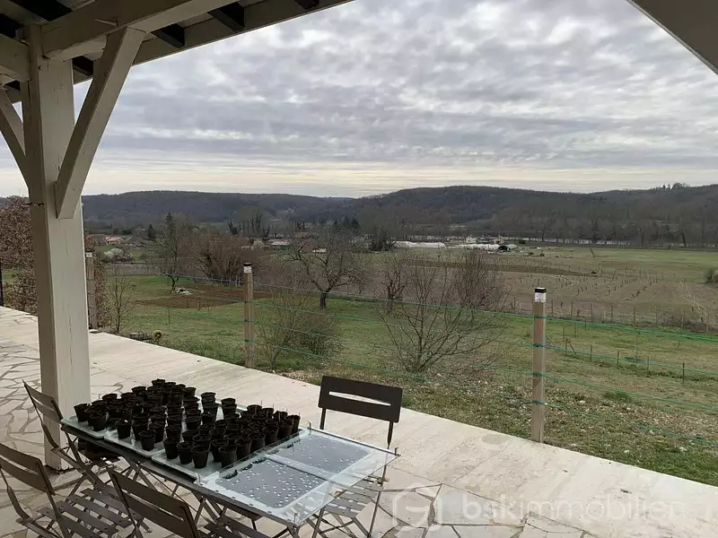 Grande maison lumineuse de 252m², idéalement située, proche des commodités. Au calme, en position dominante et exposée plein sud, elle offre une vue imprenable sur la campagne environnante, avec en fond, la rivière Dordogne.