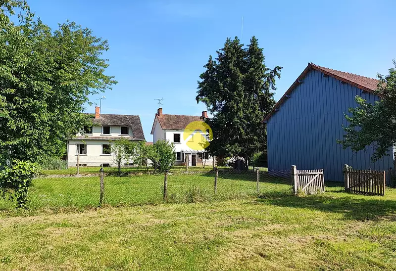 Lot de deux maisons de bourg sur 4450m² de terrain clos attenant avec une grange et un étang poissonneux de 223m².**