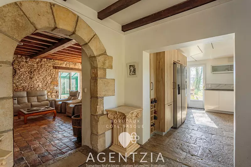 Vous serez séduit par le charme et l'authenticité des pièces de vie : pavés d'origine au sol, poutres, pierres apparentes, et cheminée.