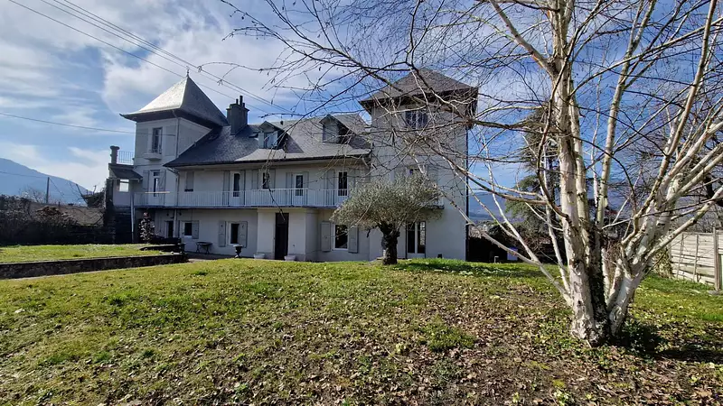 Située dans un quartier recherché de Chambéry, cette magnifique demeure de caractère construite au XVIe siècle offre un cadre de vie exceptionnel, à deux pas du centre-ville. D'une superficie généreuse de 253 m², la propriété est implantée sur un terrain arboré de 1000 m², offrant une vue imprenable sur la ville et les montagnes environnantes. Au rez-de-chaussée, vous serez accueilli par un spacieux salon lumineux, une cuisine entièrement équipée, un bureau et une chambre confortable. A l'étage, vous découvrirez une salle d'eau, 4 chambres cosy, dont l'une donne accès à une charmante terrasse panoramique. Le deuxième étage abrite deux autres chambres et un grenier aménageable offrant un potentiel d'aménagement supplémentaire. La propriété bénéficie également d'un double garage et de plusieurs caves, offrant des espaces de rangement pratiques.Afficher plus