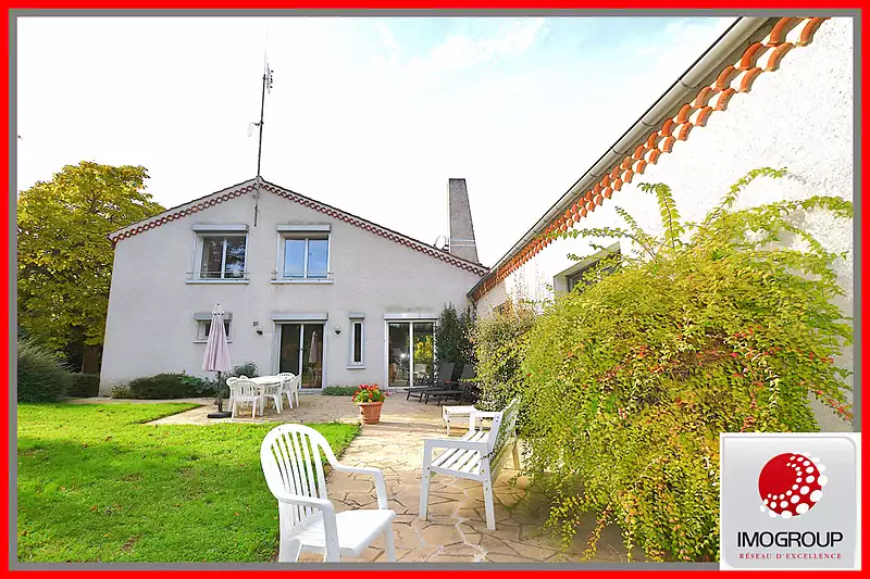 REF : 2425 ! MAISON IDÉALE POUR GRANDE FAMILLE. Élevée sur sous-sol, elle offre plus de 250m² habitables comprenant au rez de chaussée : une entrée de 16m², salon/salle à manger de 63m² ouvrant sur une vaste terrasse, cuisine équipée avec également accès terrasse, 2 suites parentales dont une avec dressing, un bureau et WC. A l'étage : palier avec placards, 3 chambres, dégagement, salle d'eau avec WC. Au sous sol, chaufferie, cave en terre battue, une pièce faisant office de salle de jeux et 2 garages avec une partie atelier. Terrain clos et arboré de plus de 10 000 m². 3 puits et un ancien terrain de tennis viennent compléter cet ensemble. Tout à l'égout, double vitrage aluminium, volets roulants électriques. UNE BELLE PROPRIÉTÉ SITUÉE EN POSITION DOMINANTE, A QUELQUES MINUTES DES COMMODITÉS. A VISITER RAPIDEMENT !! (6.12 % honoraires TTC à la charge de l'acquéreur.) Aurelien BESSON (EI) Agent Commercial - Numéro RSAC : - .