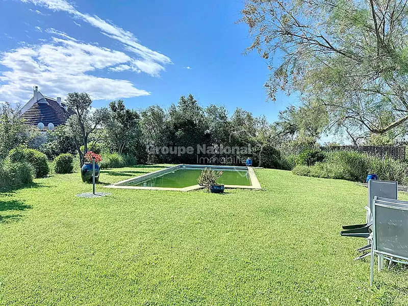 Propriété d'Exception aux Saintes-Maries-de-la-Mer , A 1,5 km de la mer Nichée dans un environnement paisible et verdoyant, à seulement 1,5 km des plages sauvages des Saintes-Maries-de-la-Mer, cette propriété d'exception offre un cadre de vie unique en pleine nature camarguaise. Sur un terrain arboré d'environ 2 800 m², cette maison se compose de plusieurs habitations, idéal pour une grande famille, un projet d'accueil touristique ou un investissement locatif. La maison principale Spacieuse et lumineuse, elle propose : ?Un vaste séjour avec coin salon et salle à manger, ?Une double cuisine entièrement équipée, ?Quatre chambres confortables, ?Trois salles d'eau, ?Une buanderie et un local technique, ?Une belle terrasse donnant sur le jardin, ?Une piscine propice à la détente sous le soleil camarguais. Les annexes A l'arrière de la propriété, vous trouverez : ?Trois studios indépendants et entièrement équipés, ?Une chambre supplémentaire, ?Un appartement de type 2, parfait pour accueillir famille, amis ou vacanciers. Le tout dans un environnement calme, entouré de nature, tout en restant à proximité immédiate du centre-village, des plages et des activités de la région. Une opportunité rare aux Saintes-Maries-de-la-Mer, mêlant charme, confort et potentiel. A découvrir sans tarder ! ? Pour plus d'informations ou organiser une visite, contactez-nous. (2.94 % honoraires TTC à la charge de l'acquéreur.)