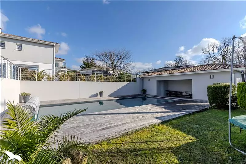 Proche du centre de Pompignac, cette maison contemporaine dispose de deux habitations pouvant faire qu'une. Chacune dispose de trois chambres dont une suite parentale, d'une cuisine ouverte sur un grand salon lumineux et de deux points d'eau. A l'extérieur, on trouve une allée goudronnée, un garage et une piscine avec pool house.