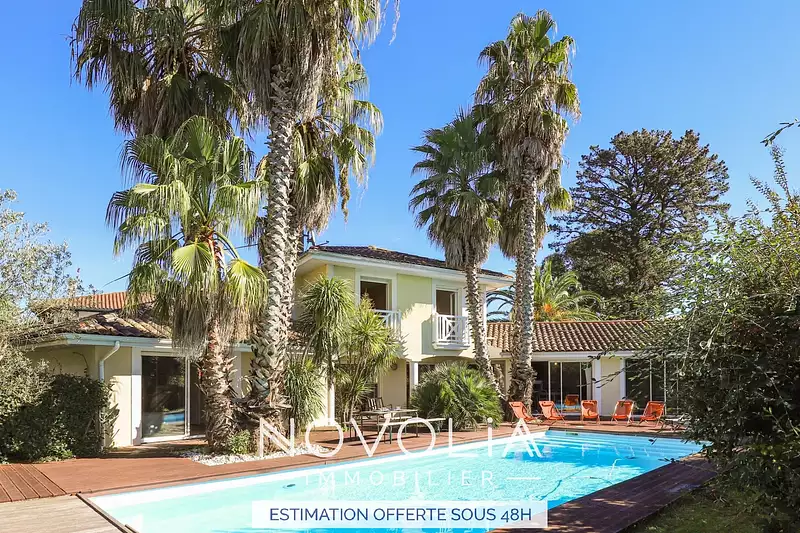 Sur un terrain de 850m2 orienté sud-ouest, se situe cette maison contemporaine de 255m2 datant de 2000 présentant 5 chambres, avec 1 étage,