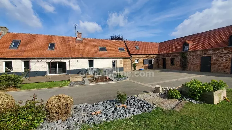 Aline Loock, Optimhome immobilier, vous emmène dans les Campagnes de l'Artois pour vous présenter cet ancien corps de ferme de 1796 entièrement rénové, vous assurant cachet et fonctionnalité avec ses 255 m² habitables, et érigé sur un terrain de 1700 m² en plein cœur du village.