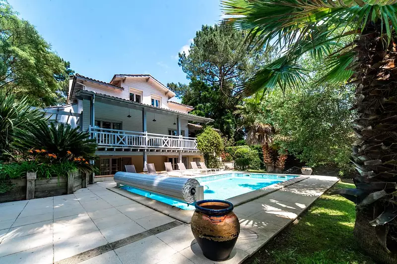 Nichée dans un cadre calme et privilégié, cette propriété bénéficie d'un emplacement rare en bordure directe du Golf de Seignosse. Son architecture d'inspiration « Louisiane » lui confère un charme unique, renforcé par ses terrasses en bois avec une vue dégagée et imprenable sur le Golf. La végétation donne une impression de voyage perpétuel en se déplaçant à travers les pièces.