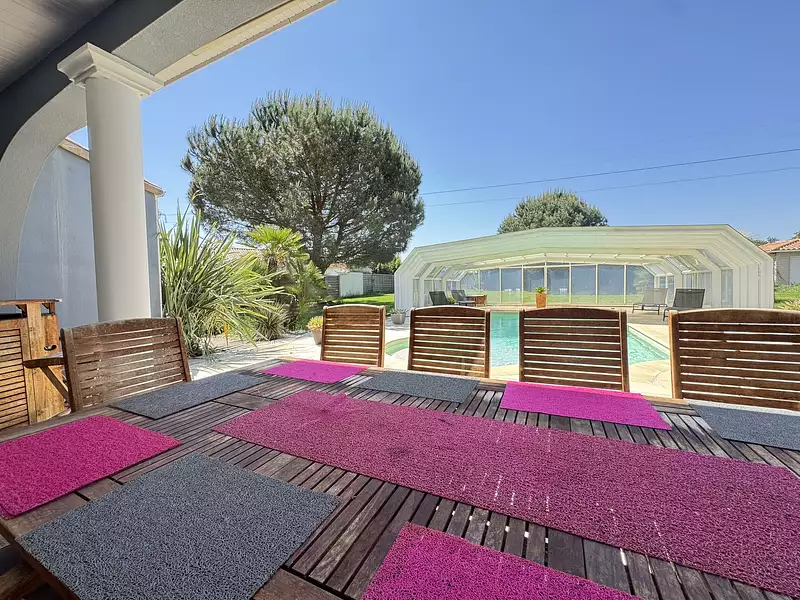 LES SORINIERES Venez vous laisser séduire par cette spacieuse maison contemporaine à la porte de Nantes dans la commune des Sorinières, offrant des accès facile aux grands axes, à l'aéroport, aux commerces. cette maison vous transportera en vacances grace à sa piscine et tout les espaces chaleureux qui l'entourent sur presque 1800m2 de terrain sans vis à vis. Plus de 250 m2 habitables majoritairement de plain pied offrant de son vaste hall avec dressing un accès direct sur une belle pièce de vie comprenant une salle de billard, un sallon de réception avec poêle à bois, une salle à manger et une cuisine semi ouverte aménagée et équipée. Pour une grande famille ou pour recevoir, vous trouverez en rdc 3 chambres et un bureau pouvant faire office aussi de chambre d'amis, une sde et un wc, à l'étage pour votre tranquilité vous retrouverez une suite parentale comprenant, une grande chambre avec terrasse privative, une pièce dressing, une sdb avec baignoire, douche, wc et une mezzanine aujourd'hui aménagée en salle de sport mais pouvant faire office aussi de bureau si vous souhaitez rester connecté avec le reste de la famille et pouvoir garder un oeil sur le beau jardin qu'offre cette agréable maison. Son jardin est sans vis à vis et offre de très spacieux espaces de terrasses et une piscine couvrable sur sa totalité pour en profiter toute l'année grace à son accès direct de la maison.A visiter avec votre agent de proximité spécialiste du secteur