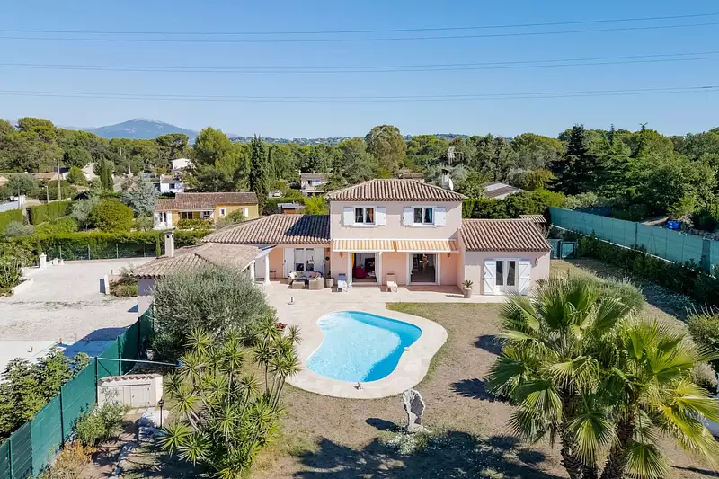 Villa d'exception avec dépendance et potentiel d'extension Nichée au cœur d'un environnement calme et verdoyant, cette propriété d'exception s'étend sur un magnifique terrain plat et arboré de plus de 3 088 m². Dès l'entrée, elle séduit par ses volumes généreux, sa luminosité naturelle et une atmosphère paisible, pensée pour allier confort, intimité et convivialité. Le vaste jardin paysager, véritable havre de paix, enveloppe une piscine élégante et son pool-house aménagé, parfaits pour profiter de moments de détente en famille ou entre amis. À l'intérieur, le séjour spacieux s'ouvre largement sur l'extérieur grâce à de grandes baies vitrées, offrant une belle continuité entre la maison et le jardin. La cuisine ouverte, entièrement équipée séduira les amateurs de gastronomie et les passionnés de moments de partage. Le rez-de-chaussée accueille une suite parentale élégante, avec dressing, salle de bains dotée d'une baignoire et d'une douche, ainsi qu'un grand bureau avec rangements pouvant également faire office de chambre. À l'étage, deux grandes chambres supplémentaires avec penderie, une salle d'eau et un WC indépendant complètent l'espace nuit. Une dépendance de 40 m² entièrement meublée avec séjour, chambre, salle d'eau, mezzanine et jardin privatif représente une opportunité idéale pour recevoir vos proches en toute indépendance, ou pour envisager une activité de chambres d'hôtes ou de location saisonnière, sans compromettre votre tranquillité. Côté prestations, la villa dispose d'un garage de plain-pied de 100 m², pouvant accueillir jusqu'à cinq véhicules, ainsi que plusieurs emplacements de stationnement extérieurs. Pour vos loisirs, une vaste salle de jeux équipée d'un billard, d'un bar et d'un espace détente, promet de belles soirées conviviales et de précieux moments en famille. Enfin, un permis de construire accepté et purgé offre la possibilité de bâtir une seconde villa attenante sur la restanque du bas, d'une surface de 118 m² (radier et fondations réalisés) ouvrant la voie à un projet d'extension (division parcellaire impossible). Idéalement située, à seulement quelques minutes de Cannes, Mougins et de l'aéroport international de Nice, cette villa se distingue par son emplacement stratégique et son potentiel exceptionnel. Elle saura répondre à de multiples projets de vie : grande famille, résidence intergénérationnelle, maison d'hôtes ou résidence principale avec forte valorisation à long terme.