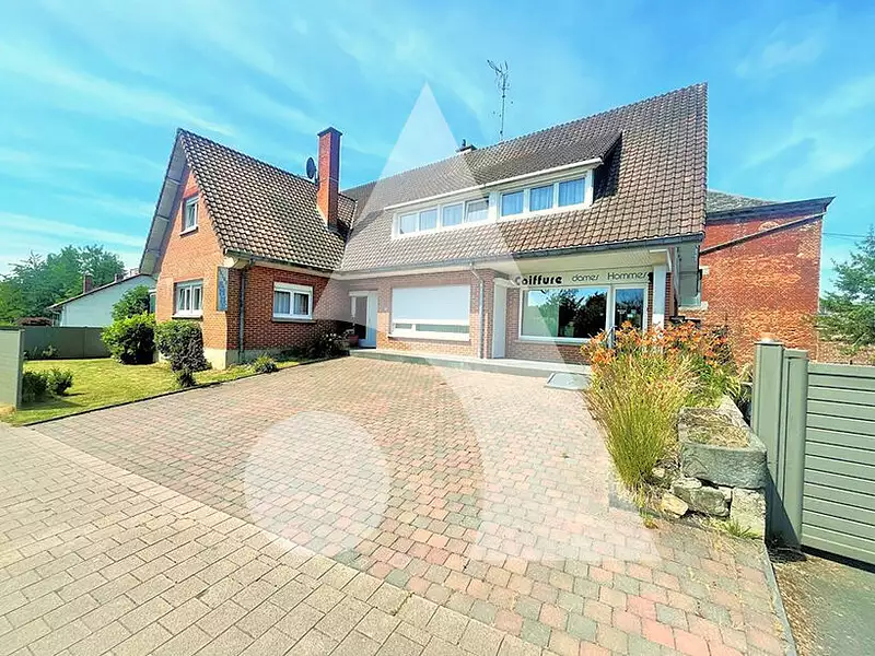 Au coeur de Feignies, dans un quartier vivant et recherché, se trouve une maison individuelle de 224 m², pleine d'histoire et de potentiel. Dès le premier pas passé la porte, on ressent immédiatement la générosité des volumes et la chaleur d'un lieu pensé pour accueillir une vie familiale autant qu'un projet professionnel. Un rez-de-chaussée pensé pour vivre et travailler : Le rez-de-chaussée ouvre sur un bureau lumineux de 14 m², idéal pour le télétravail, une chambre en rez-de-chaussée ou une salle de jeux. La pièce de vie, vaste et conviviale, offre 42 m² baignés de lumière, parfaite pour recevoir famille et amis autour de la cheminée. La cuisine de 16 m², spacieuse et fonctionnelle, invite aux repas partagés. Une buanderie complète cet espace déjà très pratique au quotidien. A l'avant de la maison, une surface commerciale de 33 m², avec ses emplacements de stationnement, permet d'allier habitation et activité professionnelle . Une opportunité rare dans le secteur. Un étage aux volumes exceptionnels : A l'étage, l'espace nuit surprend par ses proportions. Quatre grandes chambres de 14 à 35 m², dont une suite avec salle de douche attenante, forment un univers chaleureux et modulable. L'une des chambres est aujourd'hui traversante, mais la création d'un couloir de desserte est simple et peu coûteuse, offrant de nombreuses possibilités d'aménagement. Un quotidien tourné vers la nature : Cette maison ne s'encombre pas d'un grand terrain, et c'est ce qui en fait tout son charme : moins d'entretien, plus de liberté, et surtout une situation privilégiée à deux pas de la Coulée Verte, idéale pour les balades, les sorties sportives ou les moments de détente au grand air. Une véranda chauffée de 17 m², véritable pièce à vivre en toute saison, prolonge agréablement le rez-de-chaussée. Le sous-sol complet avec garage ajoute une capacité de rangement rare, pratique pour les véhicules, le bricolage ou le stockage professionnel. Le DPE en D témoigne d'un bâti sain. Une chaudière vient d'être installée cette année. A prévoir : Un rafraîchissement général permettra de révéler tout le potentiel de cette grande maison polyvalente. (6.00 % honoraires TTC à la charge de l'acquéreur.) Christophe MILOCHE (EI) Agent Commercial - Numéro RSAC : - .