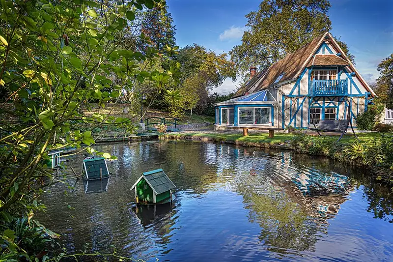 Un jardin paysagé au cadre idyllique bordé d'un ru et d'une cascade accompagne les prestations de cette demeure .
