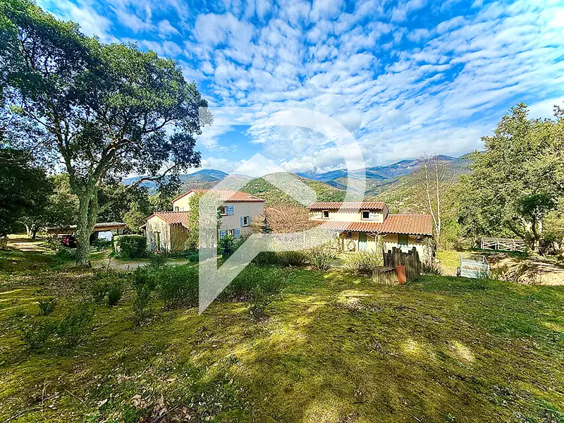 ARLES SUR TECH, Découvrez cette magnifique villa 4 faces de 170 m² nichée au coeur d'un parc arboré de 8525 m², offrant calme, intimité avec vue sur le massif du Canigou, la serre du roc Negre. Une maison spacieuse et lumineuse!!! Dès l'entrée, vous serez séduits par un vaste espace de vie de plus de 50 m² sublimé par un plafond cathédrale baigné de lumière et ouvert sur un patio couvert avec de belles terrasses. Dans la continuité , une cuisine semi ouverte aménagée et équipée avec un cellier attenant, alliant fonctionnalité et convivialité. Un agacement idéal: -Rez-de-chaussée: Suite parentale avec dressing et salle d'eau (douche à l'italienne), un espace bureau idéal pour le télétravail, un WC indépendant. -A l'étage: Trois chambres confortables, une salle d'eau moderne et WC indépendant. Des prestations haut de gamme: Chauffage au sol avec pompe à chaleur, double vitrage aluminium et pvc, volets roulants électriques et vantaux bois, isolation performante (toit, murs et plancher), forage (90 m de profondeur) avec système automatisé d'alimentation sur un bassin (divisé en 2: 7 m3 pour le jardin, 3 m3 pour la partie habitation) pour une autonomie en eau avec système de filtration et lampe UV, construction en béton banché, fosse septique. Trois chambres d'hôtes indépendantes! De plus, cette propriété dispose de trois chambres d'hôtes ( 34 m², 33 m², 22 m²) pour une superficie totale de 90 m², chacune avec sa propre terrasse privée avec vue sur le massif du Canigou. Un véritable atout pour un projet d'accueil ou pour recevoir famille et amis en toute indépendance. Un bien rare sur le marché! Ne laissez pas passer cette opportunité unique !!!!! Contactez-nous rapidement pour une visite et laissez-vous charmer par ce lieu d'exception. Il n'attend que vous! Laure DATO (EI) Agent Commercial - Numéro RSAC : 951684471 - PERPIGNAN.