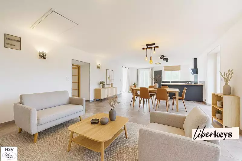 | Cuisine ouverte, équipée | Séjour de 47 m² |