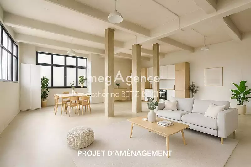 Les 160 m² habitables se distinguent par leurs volumes généreux, la luminosité naturelle (exposition sud et ouest) et une grande flexibilité d'aménagement.