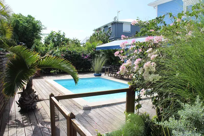 L'ensemble vendu meublé avec une belle piscine, grande terrasse, jardin, sur un terrain clôturé de 609 m², avec parking intérieur (possibilité abri voiture ).