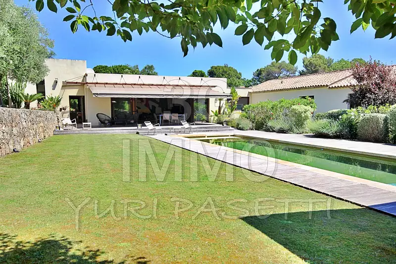 L'espace extérieur, parfaitement pensé, offre une magnifique piscine chauffée et plusieurs terrasses pour profiter du climat azuréen toute l'année, ainsi qu'un terrain de pétanque et coin BBQ. Un garage et plusieurs places de stationnements complètent les prestations.