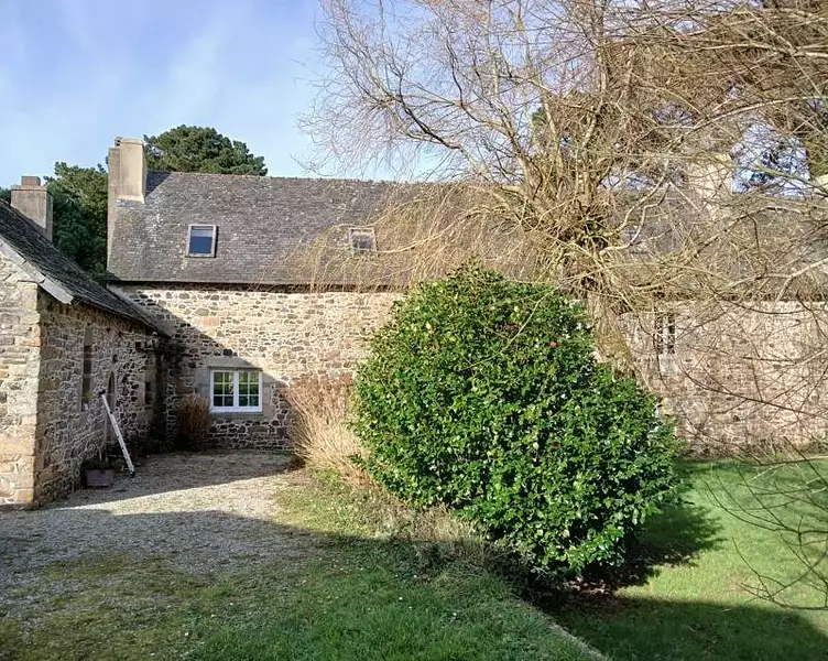 Plougasnou - Entre le bourg et les plages - Manoir du XVème s. au coeur d'un parc arboré. Grand espace de vie avec son salon traversant dominé par une cheminée monumentale. Salle à manger et cuisine séparée, six chambres et une bibliothèque. Deux dépendances en pierres ainsi qu'un hangar de stockage.