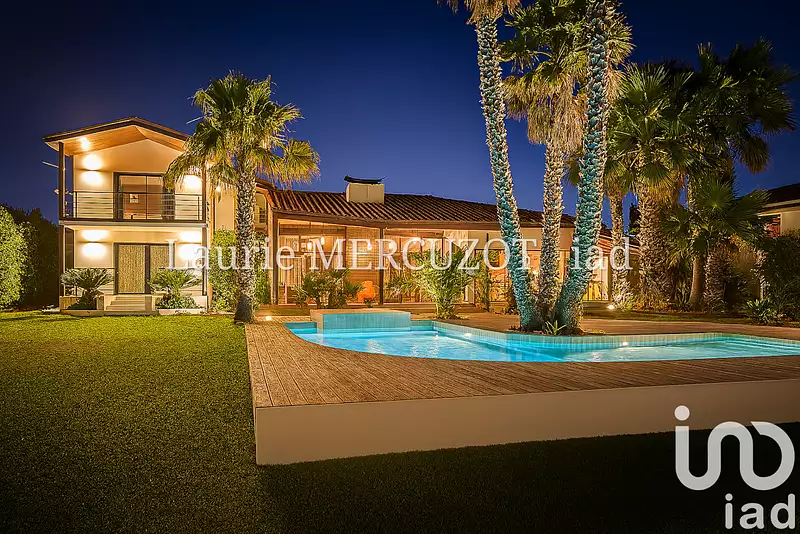 Sublime villa d'architecte T7 de 260 m² élevée d'un étage/ 4 faces / construction 2008 / 4 chambres dont 2 suites parentales : 2 en Rez-de-chaussée, 2 à l'étage / pièce de vie lumineuse / belle hauteur sous plafond / grandes baies vitrées / mezzanine / bureau aménagé avec vue / double salon / piscine magnifique / terrasses en béton marqué / cuisine d'été neuve / coin barbecue/ salle de sport avec coin douche / jacuzzi / 3 stationnements privatifs sur la parcelle / garage / cave / cuisine et office / buanderie au sous-sol / carport / cheminée / climatisation gainable / adoucisseur d'eau / panneaux photovoltaïques / prestations et matériaux haut de gamme / parcelle constructible / havre de paix avec un cadre de vie exceptionnel / véritable coup de coeur