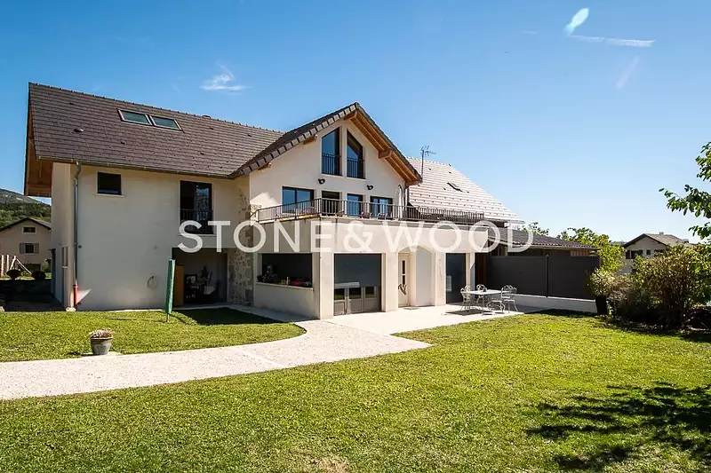 Dans un cadre calme et champêtre sur l'axe Annecy-Genève, ancien corps de ferme mitoyen du 19e siècle rénové avec des prestations de qualité.