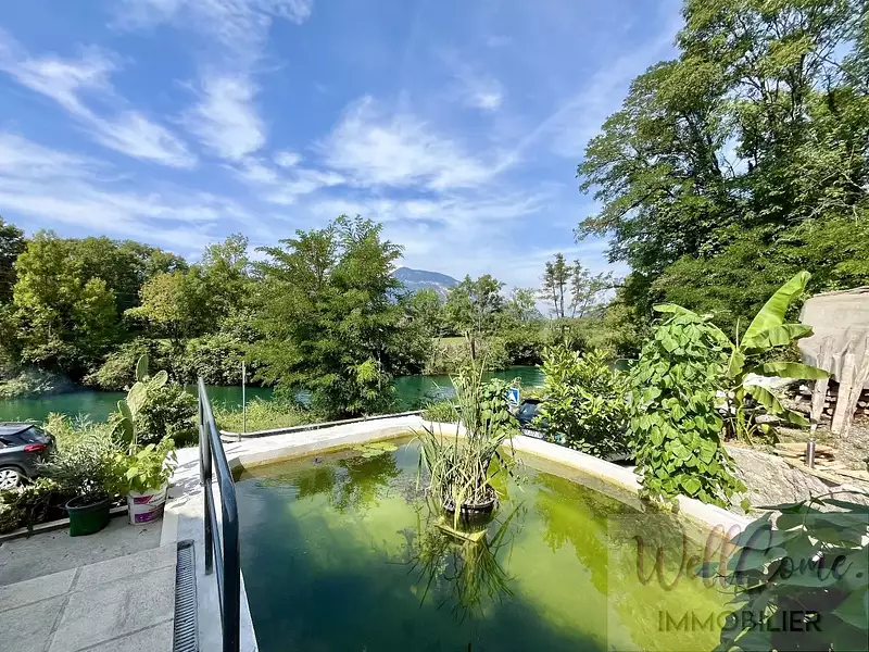 Chanaz, Savoie, Emplacement exceptionnel et immense potentiel pour cet ensemble bâti comprenant plusieurs logements et annexes à proximité immédiate du coeur du bourg et du canal. Idéal pour un projet d'habitation avec création de revenus locatifs! Cette jolie bâtisse en pierres récemment rénovée se compose d'un vaste appartement principal de 5 pièces, d'un appartement t1 bis en rez de terrasse, d'un studio et d'un logement 3 pièces duplex avec accès indépendant. Elle offre 261 m² habitables et plus de 412 m² de surface totale. Stationnements privatifs et terrain de 5800 m² en zone nature arboré et aménagé d'une terrasse et d'un bassin. Le rez de chaussée comprend un garage de 41m², une buanderie, une cave et un premier logement t1 bis de 41m² environ donnant sur une terrasse de 26m². Le premier étage comprend 2 logements, l'un de 5 pièces en duplex avec accès jardin et terrasse, l'autre de 3 pièces en duplex avec accès indépendant et cour privative. Un studio est aménagé sous combles, le reste de la surface étant occupé par un grenier. Les accès sont séparés de sorte à garantir la tranquillité de chaque occupant.. De jolies vues sur la nature et le canal s'offrent à vous depuis les fenêtres. Incontournable pour les amateurs de navigation: un anneau est mis à disposition au pied du bâtiment. De belles promenades en perspective! Les prestations des logements incluent des volets roulants solaires, des huisseries en double vitrage. La toiture a été refaite et isolée en 2007. Le chauffage est de type électrique, l'eau chaude est assurée par des cumulus dernière génération. Ne manquez pas l'occasion de découvrir ce bien de grande qualité dans ce joli village touristique dont la renommée n'est plus à démontrer! Honoraires TTC charge vendeur
