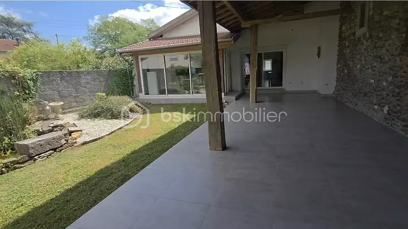 Dès l'entrée , vous serez séduit par l'atmosphère chaleureuse qui s'y dégage : un vaste séjour baigné de lumière , un salon cosy sublimé par les pierres apparentes et une magnifique cuisine aménagée et équipée avec ilot central et coin repas .Cette dernière s'ouvre sur une grande terrasse couverte de 45 m2 avec un bar et l'accessibilité directe avec le jardin .