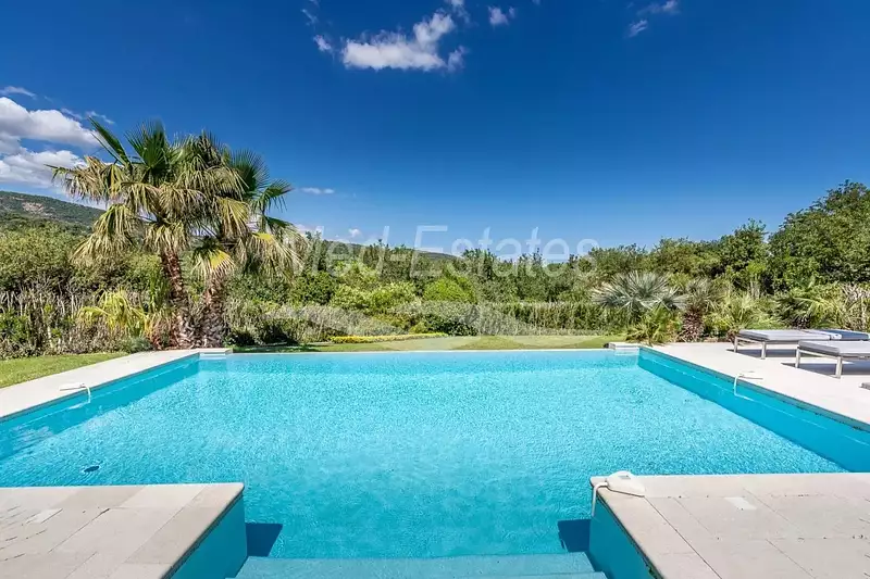 Cette propriété bénéficie d'un emplacement idéal : dans un domaine sécurisé et recherché avec des courts de tennis, dans un environnement absolument calme, à proximité du village (accessible à pied) et des plages / du port de plaisance de Grimaud (7 minutes) ; Saint-Tropez et les plages de sable blanc de Pampelonne sont facilement accessibles (+/- 20-25 minutes).