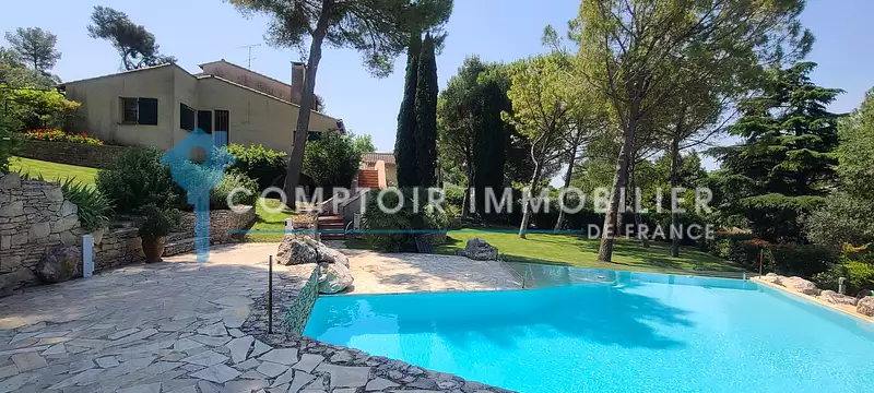 Cette réalisation de qualité, dans son écrin de verdure, conjugue le charme architectural de notre région Nîmoise, l'intelligence de la conception, et un cadre confortable et intime pour toute la famille... et pour recevoir ses amis!