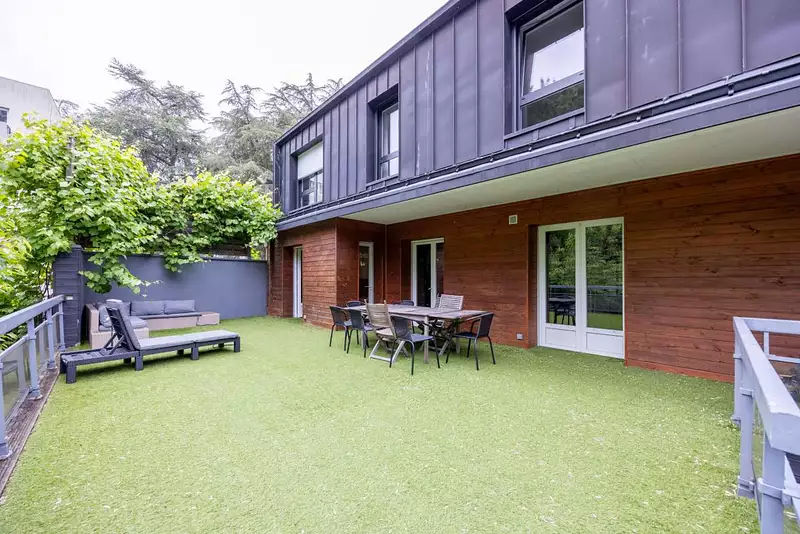 Les 10 locataires disposent d'une chambre individuelle avec dressing, bureau et salle d'eau. Ils partagent les espaces de vie (spacieuse cuisine aménagée et équipée, salon-salle à manger, salle de cinéma, salle de sport, buanderie, terrasse, jardin ...).