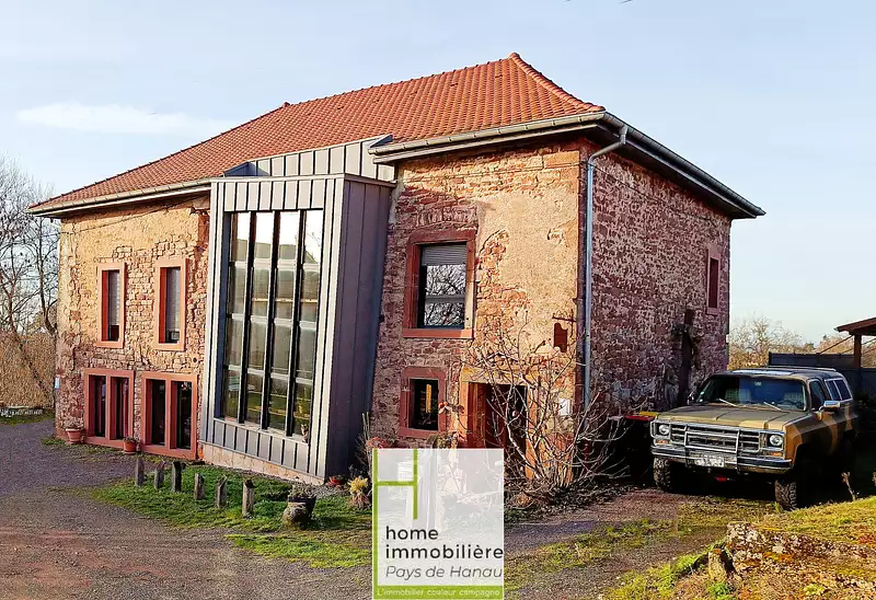 A 10 mn de Saverne sur la commune de Phalsbourg - Magnifique maison alliant subtilement art contemporain et art déco, résultat de quatre années de travail minutieux ! Cette rénovation d'exception a permis de préserver l'âme d'une bâtisse ancienne de 1870 - pierres apparentes et poutres d'origine - tout en y intégrant des matériaux nobles et natuels (bois massif, peinture à l'argile, ardoise au sol, ..) certains en provenance directement d'Inde, d'Indonésie, d'Italie, du Portugal... La récupération de pierres issues d'anciens murs a servi à créer un joli dallage extérieur. Chaque pièce bénéficie d'une décoration soignée et d'une identité propre. De vastes baies vitrées, ainsi qu'une superbe verrière de façade, offrent une luminosité optimale. Grâce à une isolation performante et à un chauffage par PAC, la maison bénéficie d'un excellent classement DPE 'A', garantissant confort et économies !
