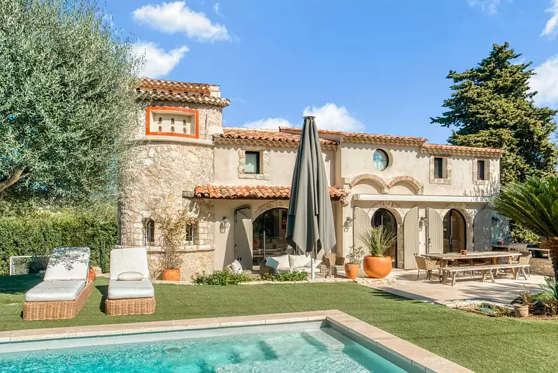 Mougins Sud, au sein d'un secteur calme et résidentiel, villa indépendante édifiée sur une parcelle de 1 800 m², rénovée avec élégance et matériaux de qualité.