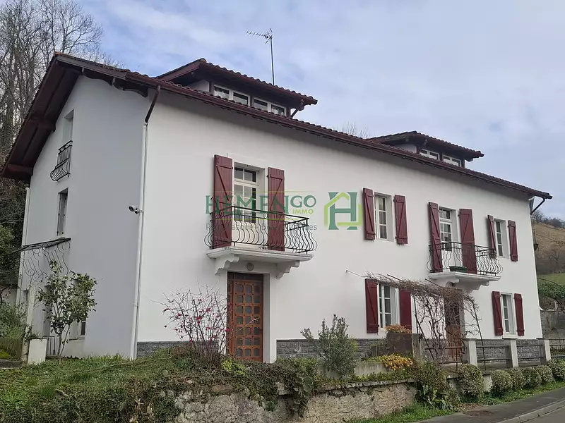 Sur une parcelle de 1940 m2, grande maison composée d'une habitation principale de 154 m2, d'un appartement attenant de 83 m2 et d'un appartement d'appoint aménagé dans les combles de 44 m2; elle est constituée de: 3 séjours/pièces principales (1 + 1 + 1), 7 chambres (4 + 2 +1), 2 cuisines (1 + 1), 2 salles de bains (dont 1 avec toilette), 1 salle d'eau et 2 toilettes indépendants. Dépendances, terrasse, jardin d'agrément sur une parcelle close et boisée complètent ce bien avec vue montagnes. Des travaux seront nécéssaires pour redonner à cette maison son éclat passé (absence de chauffage) et, en plus d'une habitation principale pour grande famille, elle peut être envisagée comme source de revenus locatifs à l'année ou en location saisonnière de par sa configuration.