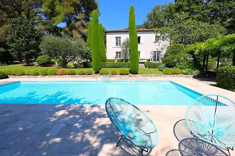 * SPERACEDES LIMITE PEYMEINADE * Dans un splendide parc de 7592 m², au calme absolu, complantés et arboré d'oliviers centenaire et d'essence de la région. Magnifique maison bourgeoise de 265 m² habitables, construite autour d'une bergerie datant du 16 ème siècle, rénovée dernièrement. La partie habitation comprend : une entrée, une cuisine équipée et aménagée avec coin repas donnant sur une verrière ouvrant sur la terrasse ombragée, salle à manger, vaste séjour salon avec cheminée insert, 2 chambres avec salle de bains et salle d'eau. A l'étage : 3 chambres dont une suite parentale, chacune avec sa salle de bains ou douche WC, grand dressing. Très bel espace piscine avec volet sécurisé et terrasse donnant au pool house de 25 m² climatisée avec coin cuisine, salle d'eau-wc. Double garage avec porte automatique, cave à vins, annexes de rangements , tout a l'égout, chauffage par climatisations réversibles et chaudière au fuel. Possibilité de constructions supplémentaires. coup de coeur assuré pour ce bien d'exception... (4.51 % honoraires TTC à la charge de l'acquéreur.)