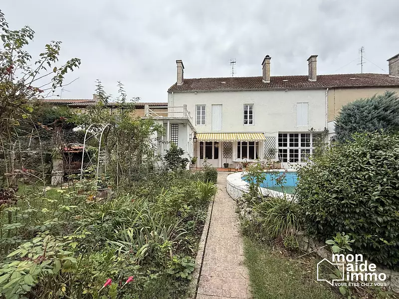 Son jardin intimiste de 700 m², un écrin de verdure, abrite une superbe collection de rosiers anglais. La piscine, bien que nécessitant une rénovation, promet des étés inoubliables et vous offre des possibilités infinies pour personnaliser vos espaces extérieurs.