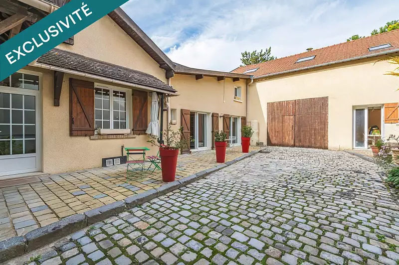 Cette maison présente un extérieur accueillant et fonctionnel, un garage pour deux véhicules, un coin atelier, une lingerie et une pièce de réception avec coin cuisine. Le charme d'un corps de ferme se matérialise à travers un chartil traditionnel, soulignant le caractère rustique chic de cette maison.