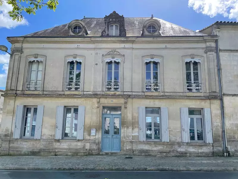 Corme Royal, une ancienne maison de maître rénovée en 2020 bâtie sur un terrain clos de 819 Mm² et offrant : Hall d'entrée, une salle d'eau avec W.C, deux salles à manger, un bureau, un séjour donnant sur une terrasse, une cuisine aménagée équipée.