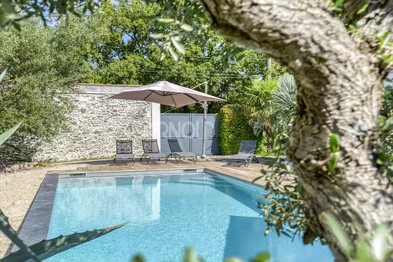 La parcelle de plus de 1500m² est agréablement paysagée d'essences méditerranéennes et comprend une piscine chauffée, un local technique , un vestiaire avec douche et un espace de stockage.