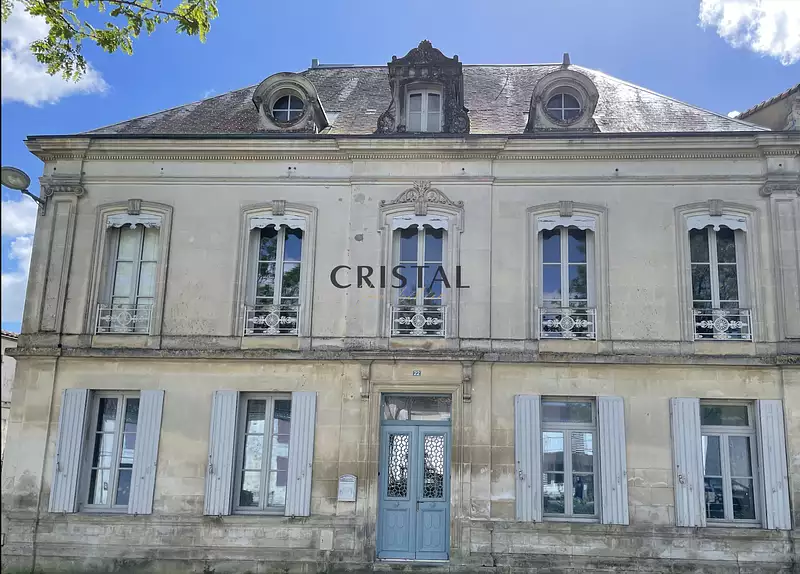En Toute Transparence, CRISTAL IMMOBILIER vous présente cette grande maison de caractère située au coeur de Corme-Royal. Au rez-de-chaussée, elle offre un vaste hall d'entrée distribuant une salle à manger, un salon, un séjour, une cuisine entièrement aménagée et équipée, un bureau, une salle d'eau avec toilettes.